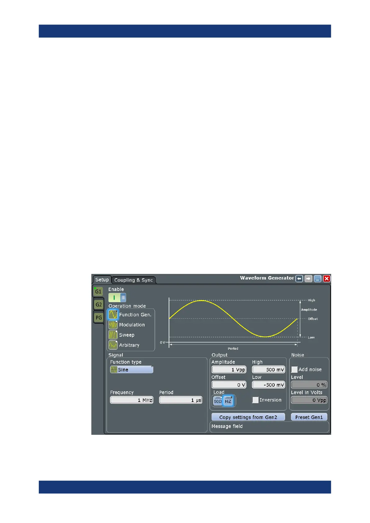 The R&S RTE function generator can generate input signals during testing. These sig-
