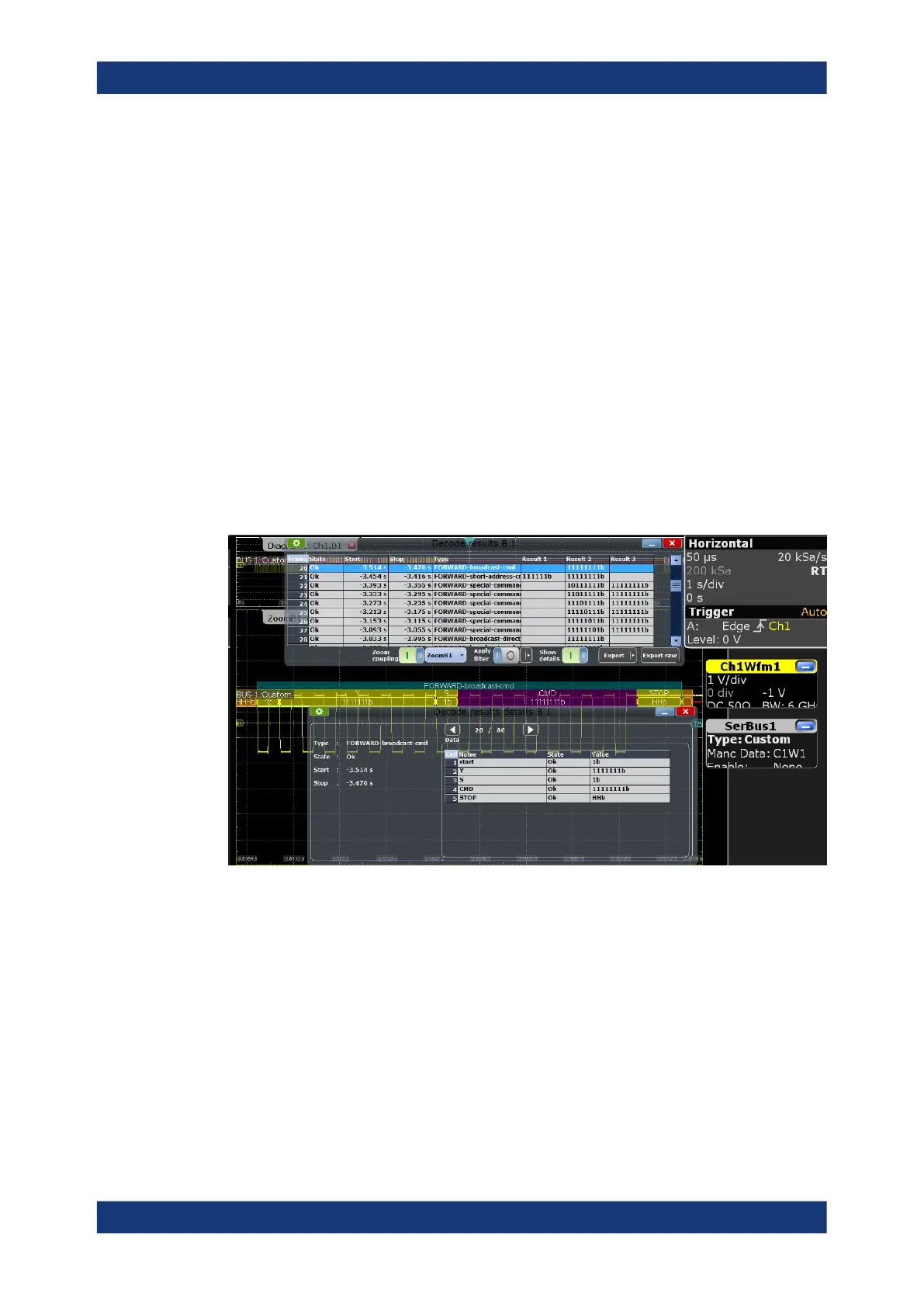 The example in Figure 13-85 shows decoded and binary signals of a custom serial