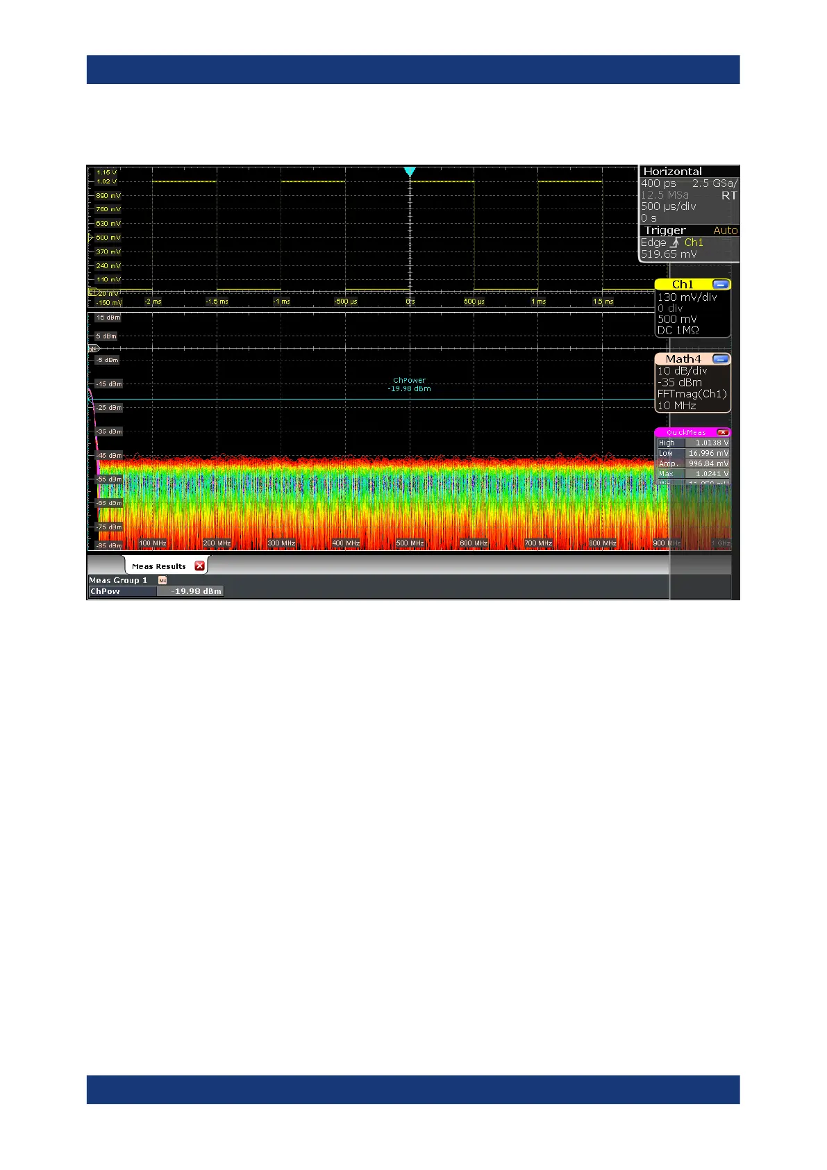 The channel power is displayed below the FFT diagram.