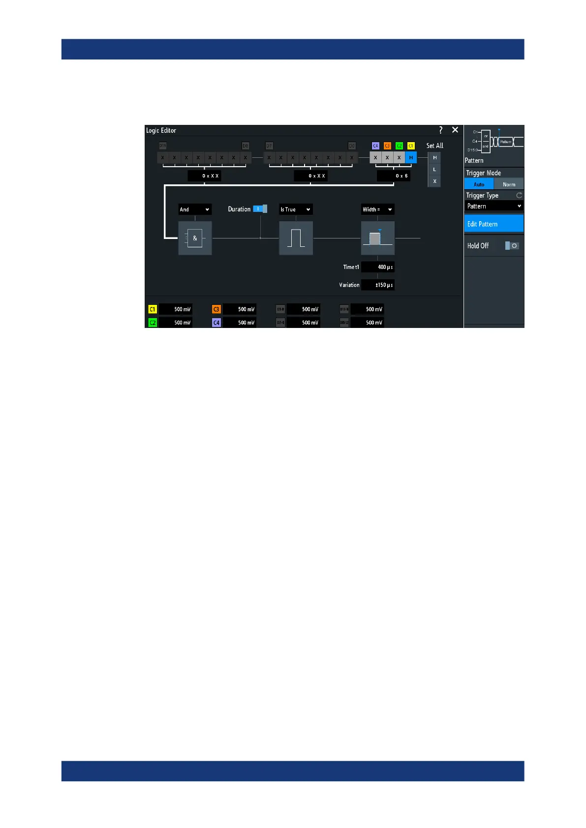Defines the pattern by selecting the state "H" (high), "L" (low) or "X" (do not care) for