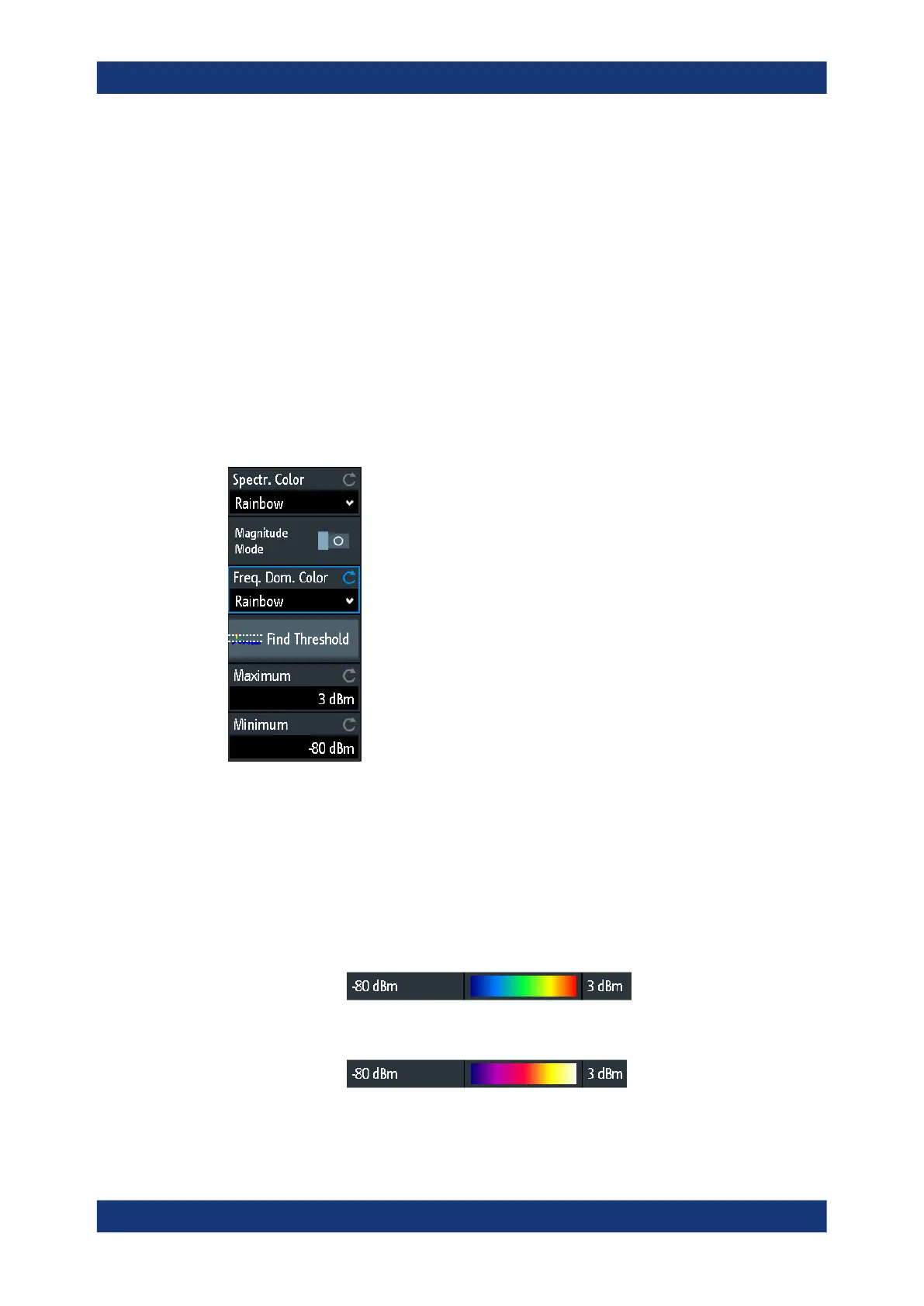 If "Magnitude Mode" is on, "Spectr. Color" sets the color scale for the spectrogram and