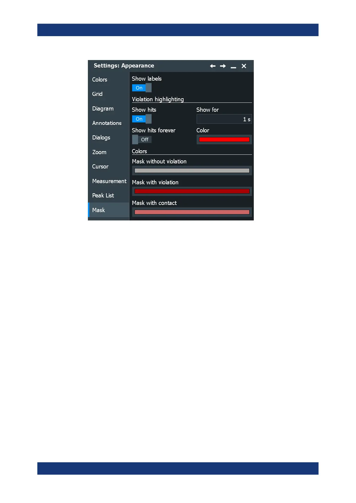 If selected, the mask hits are shown for an unlimited period of time.