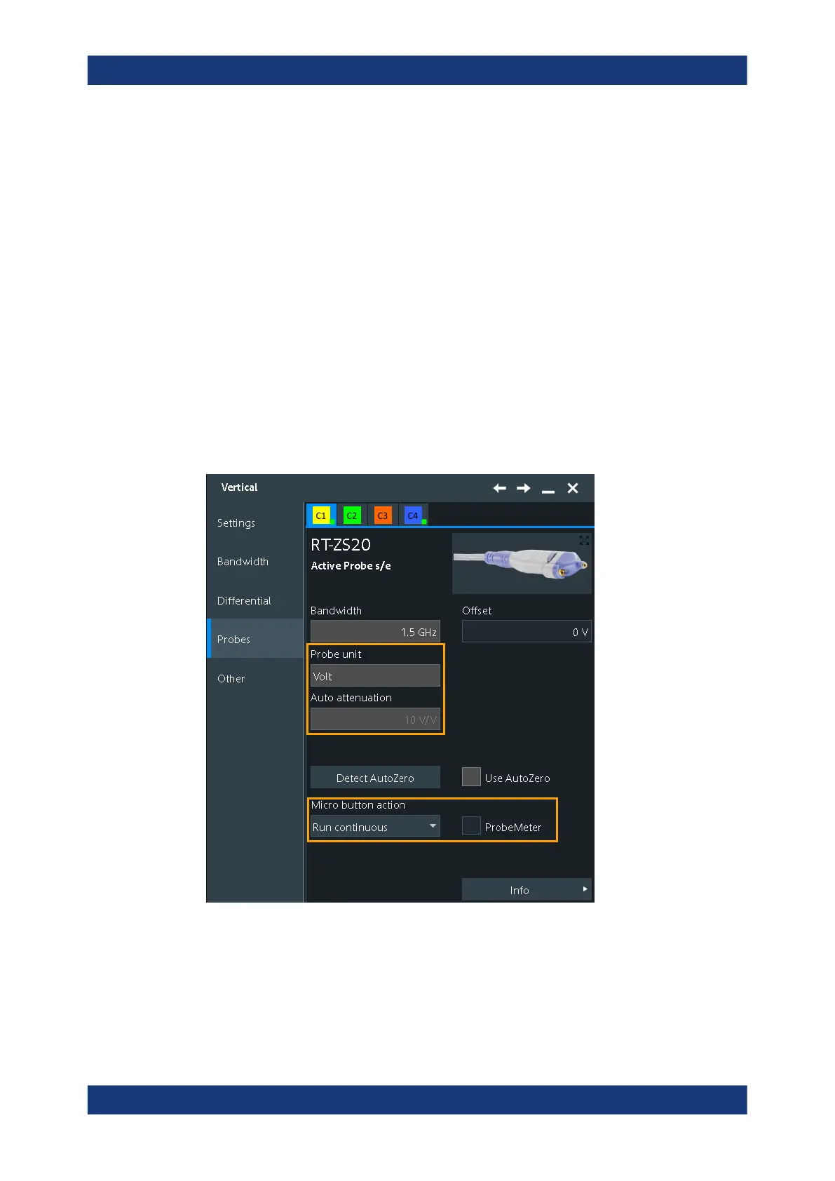 5.6.2 Settings for the R&S probe interface (voltage probes)
