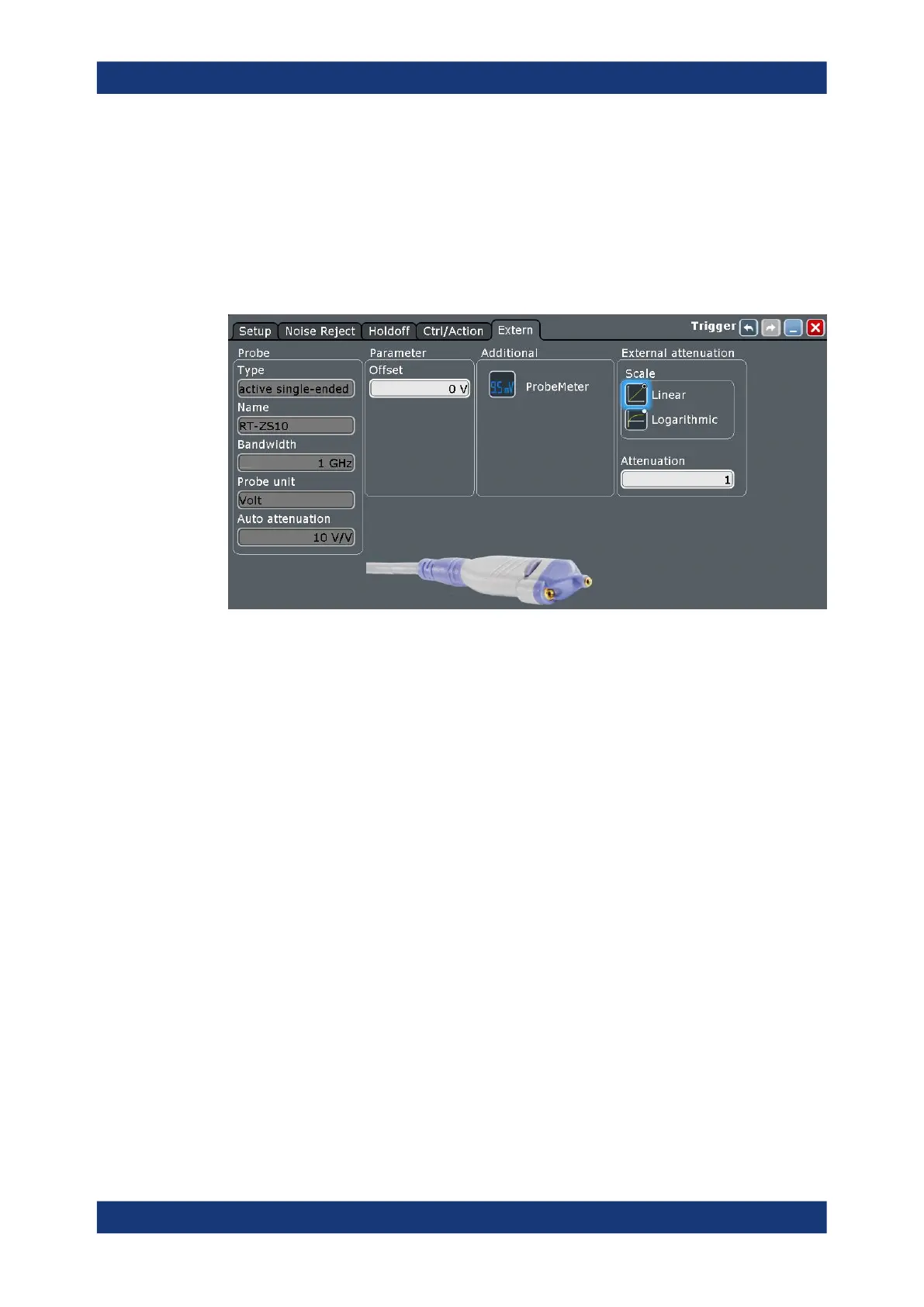 The "Trigger" > "Extern" tab provides all settings that are relevant for the probe that is