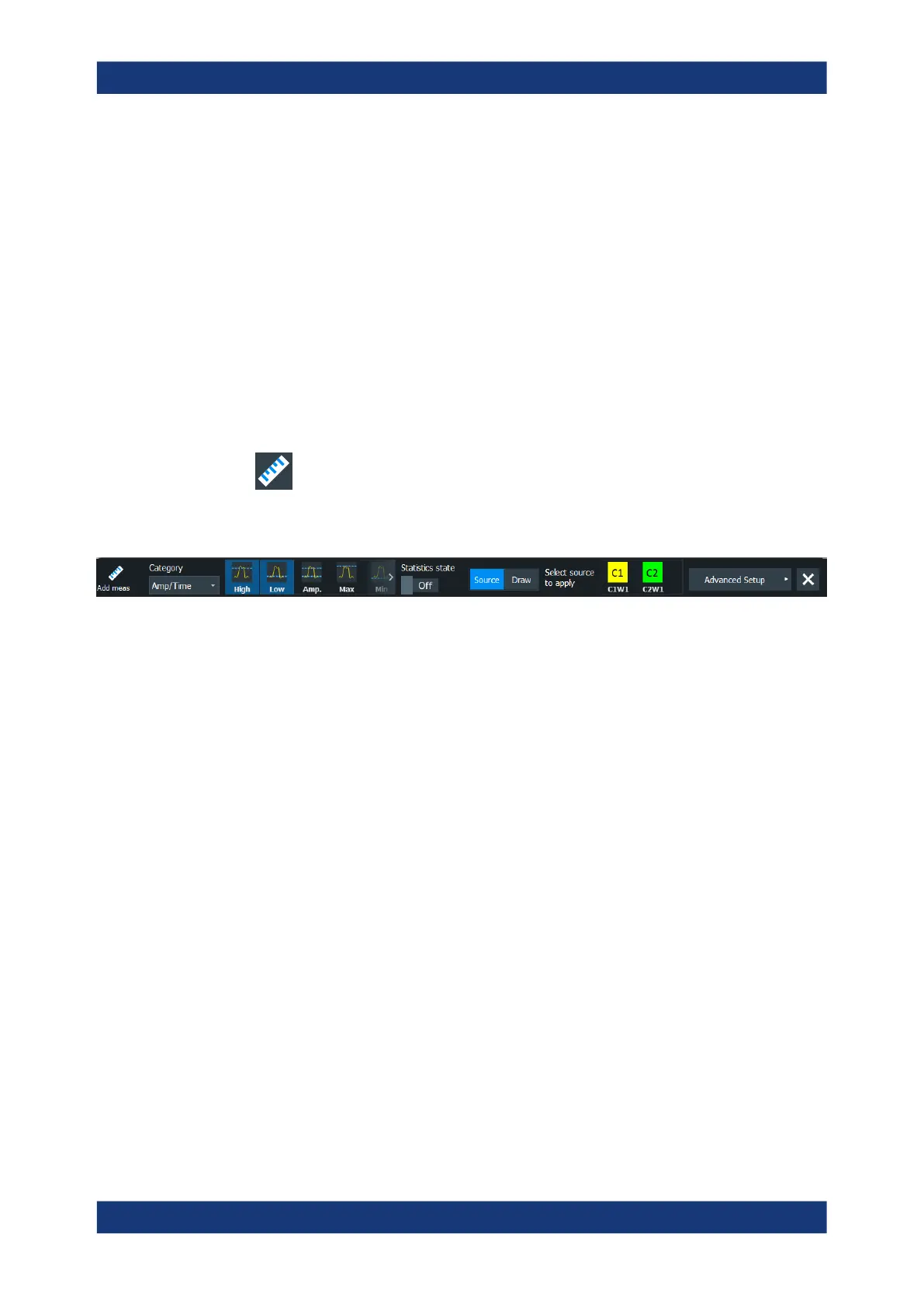 2. On the toolbar assist, select the category, the measurements and the source to be