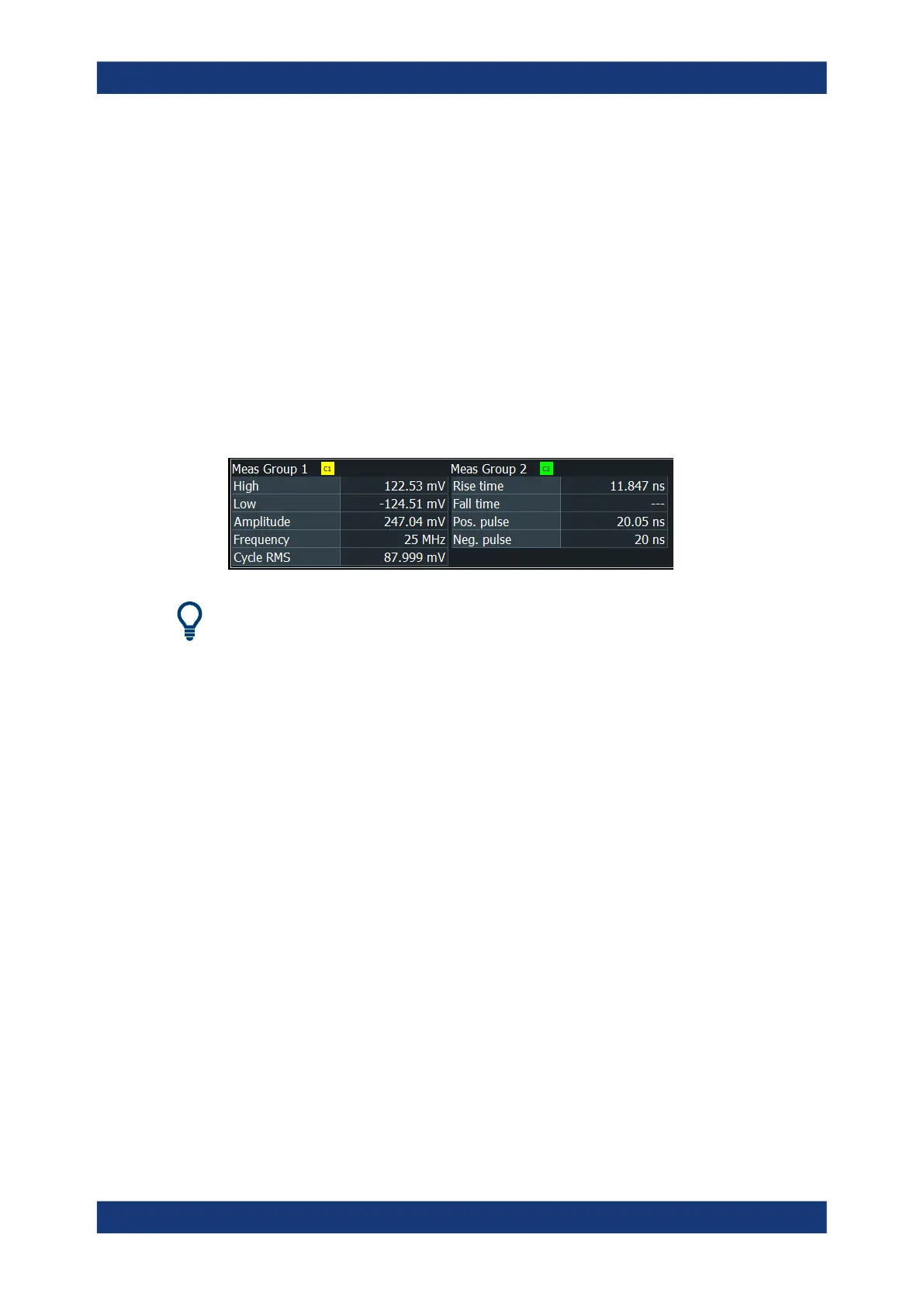 By default, the results of automatic measurements are displayed below the waveform
