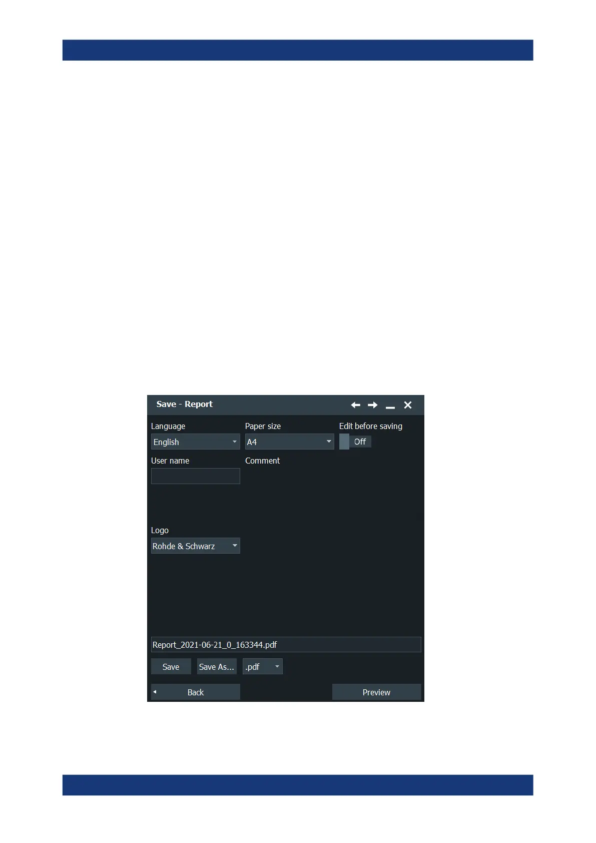 Access: "Menu" menu > "Save/Recall" menu > "Save" tab > "Report"