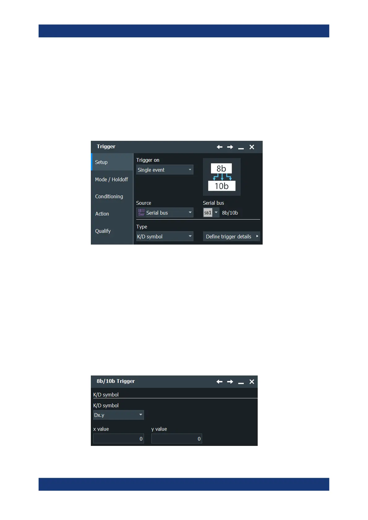 the 8b/10b trigger settings.
