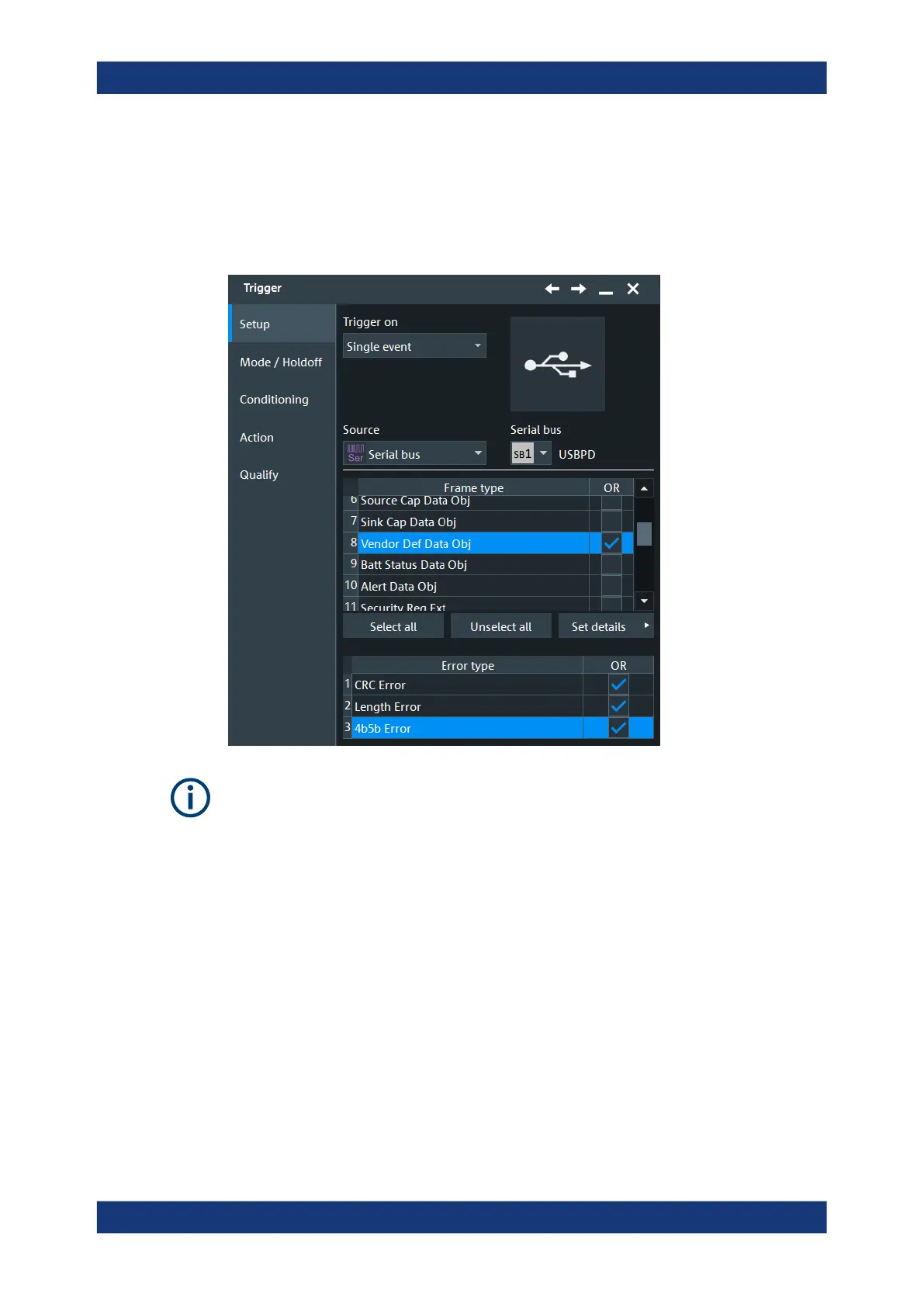 In this section, all trigger settings for USBPD are described. The user interface of the