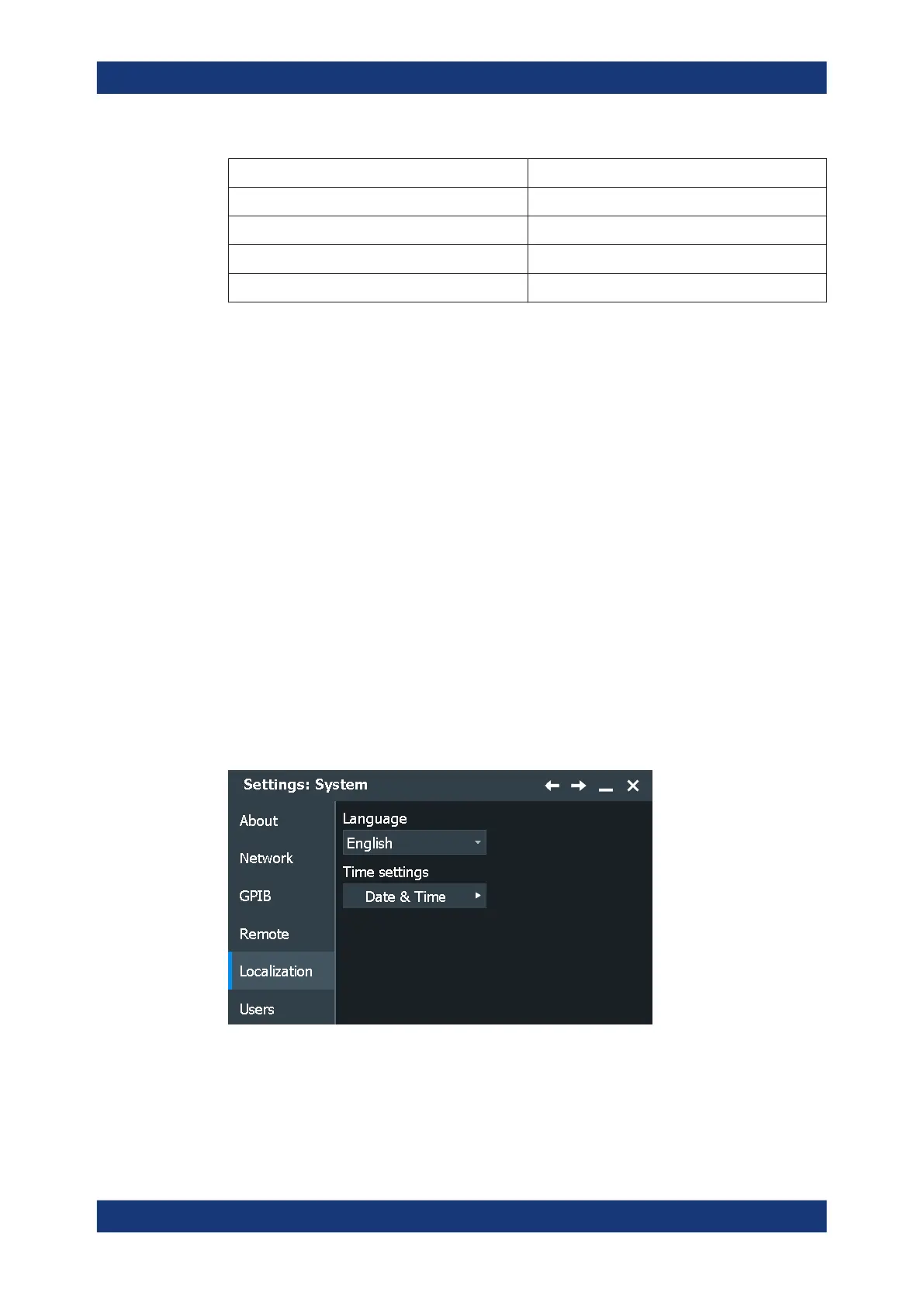 Rohde & Schwarz RTP Series - GPIB Settings; Localization Settings; Remote Settings