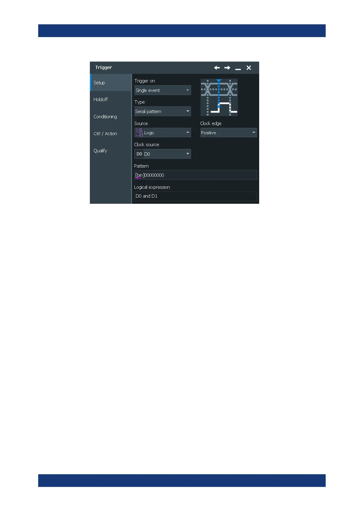 Figure 14-7: Serial pattern trigger settings for trigger source = logical combination of digital channels