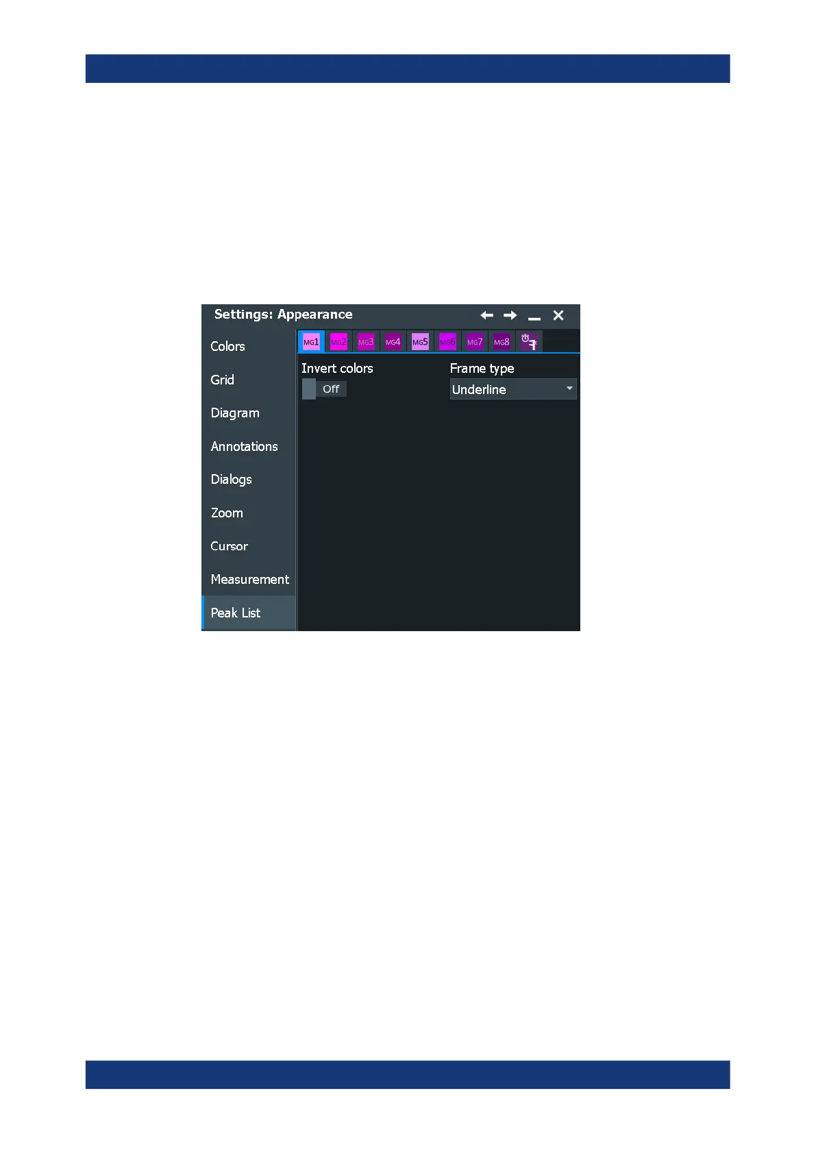 Access: "Settings" > "Appearance" > "Peak List" tab