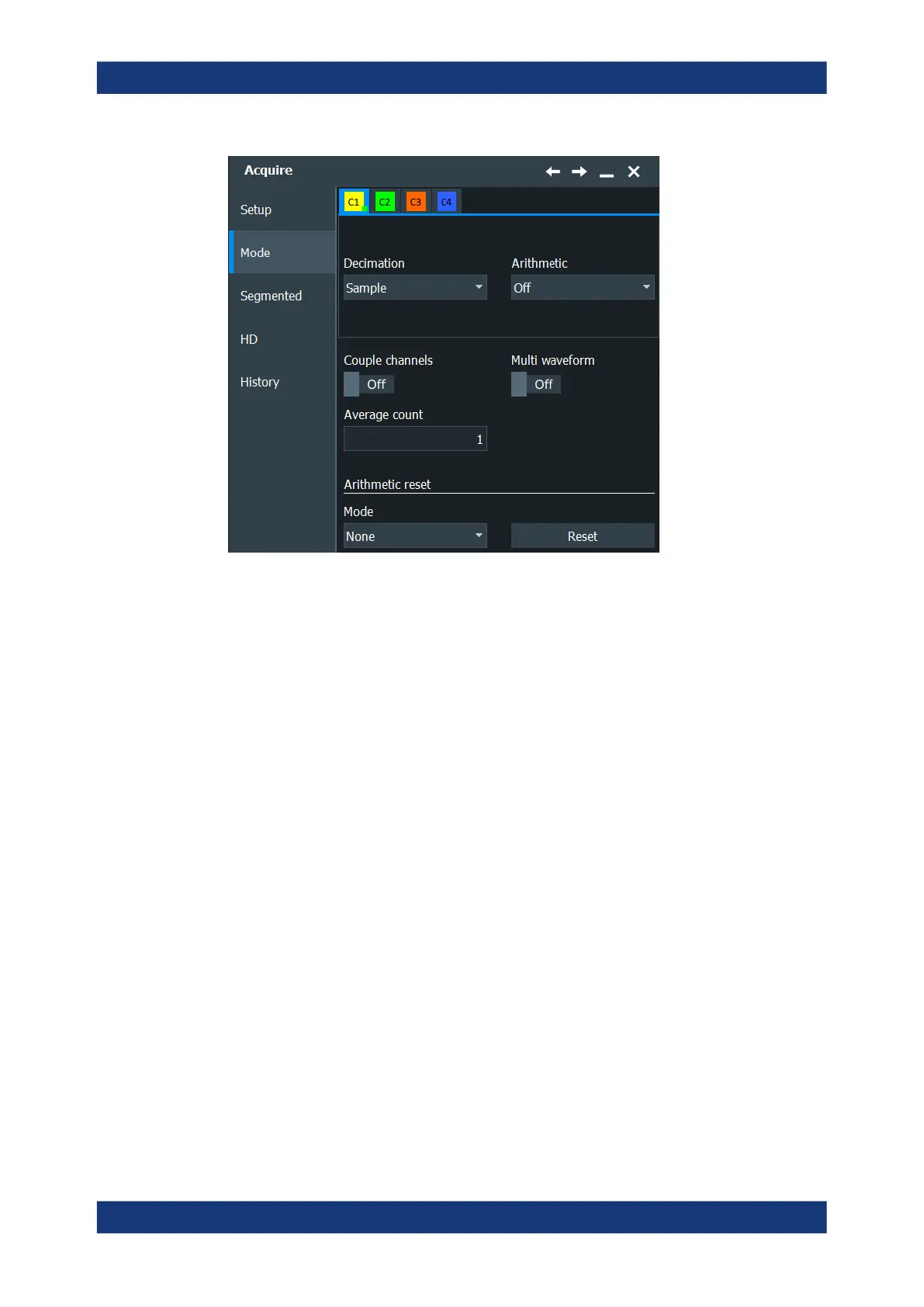 The R&S RTP uses decimation, if the waveform "Sample rate" is less than the ADC