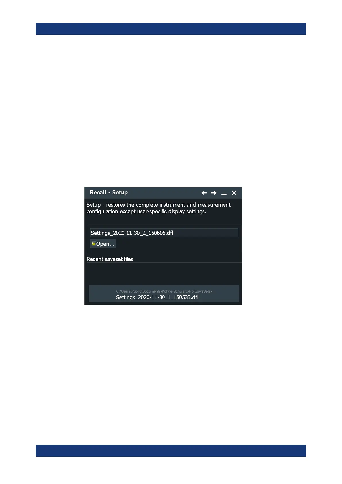 Access: "Menu" key > "Save/Recall" key > "Recall" tab > "Savesets"