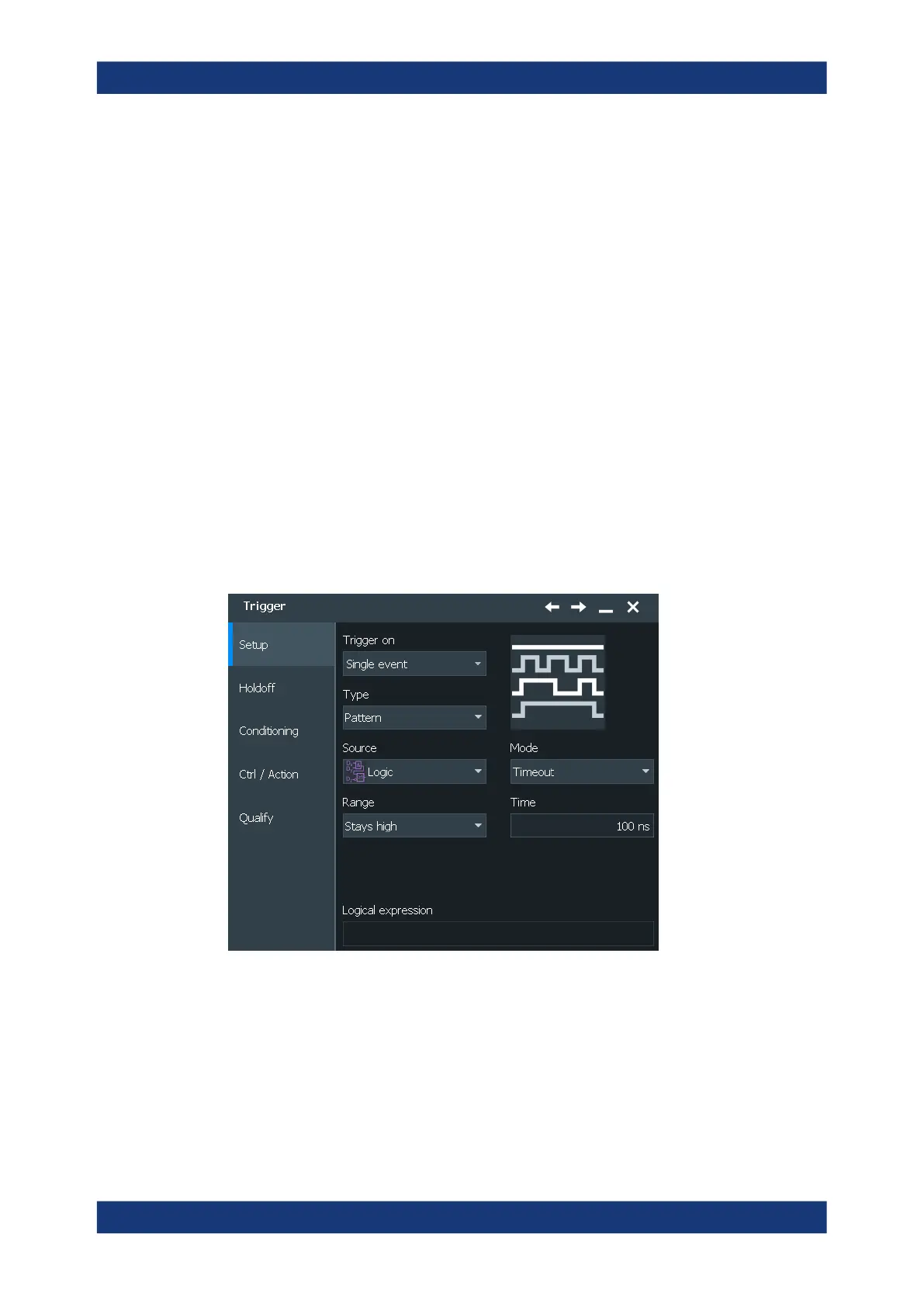 nels (pattern) and a time limitation (holdoff). The pattern definition is defined by the log-