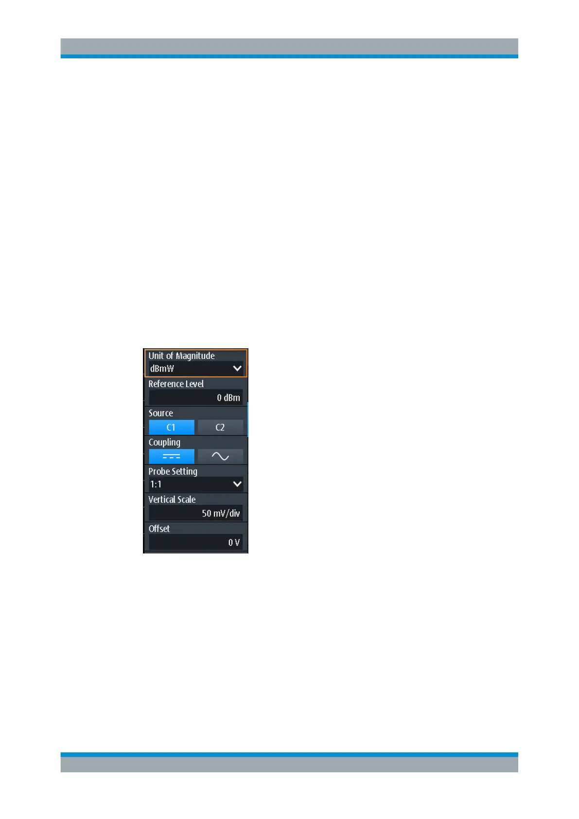 You can configure the vertical settings for the input signal in Scope mode. When you