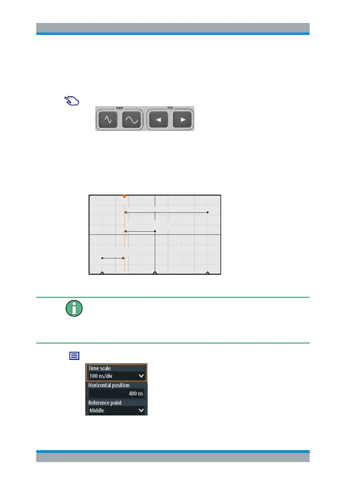 1. To set the timebase and horizontal position, use the [TIME] and [POS] keys.