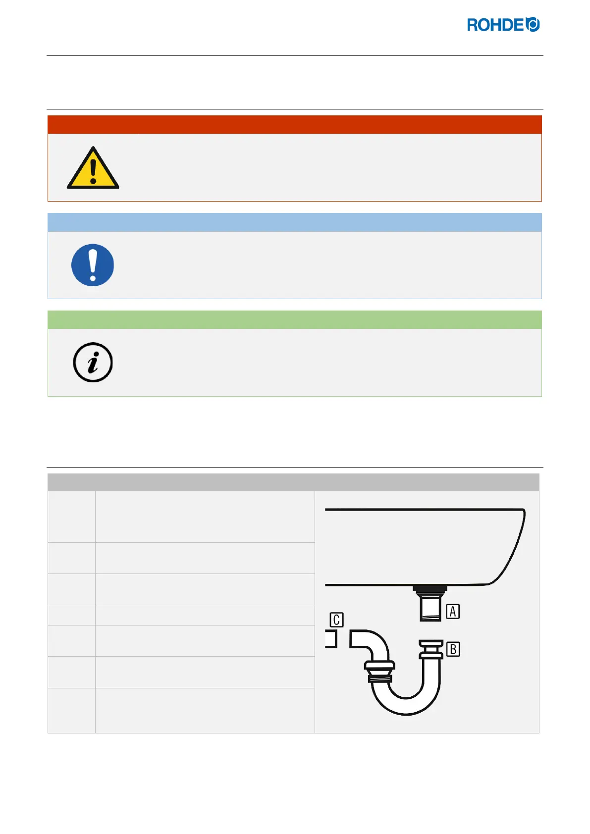 Nepoužívejte odkalovací nádrž, dokud nejsou kompletně namontována připojení pro přívod