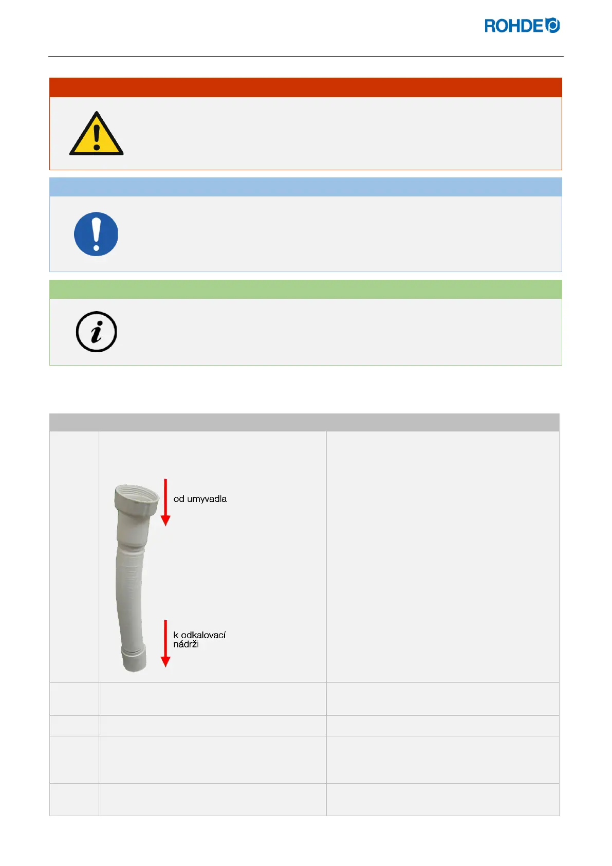 Nepoužívejte odkalovací nádrž, dokud nejsou kompletně namontována připojení pro přívod