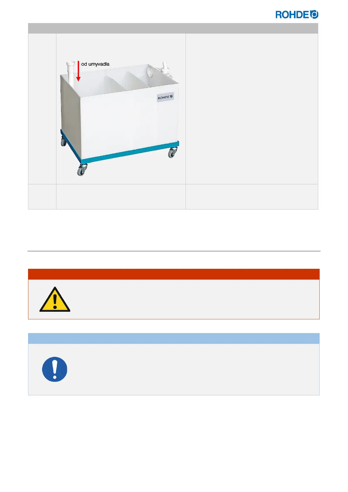 Nepoužívejte odkalovací nádrž, dokud nejsou kompletně namontována připojení pro přívod