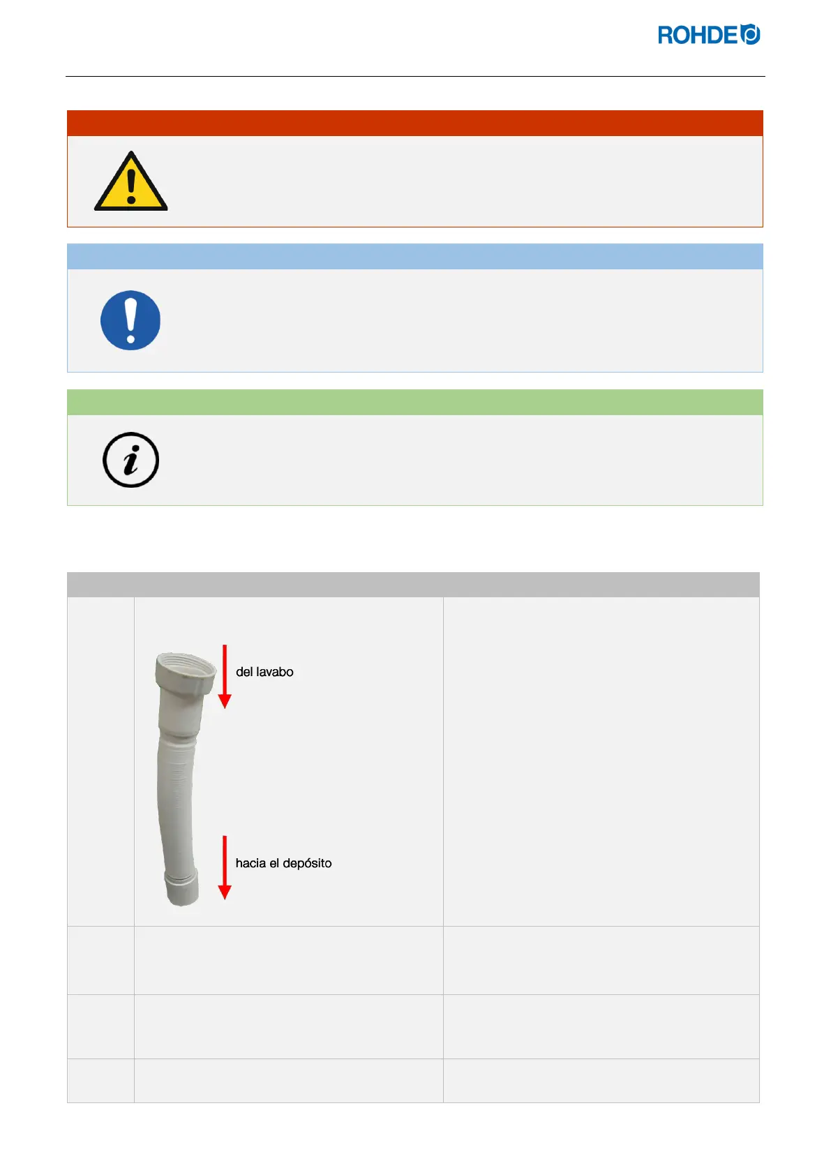 La conexión de entrada que va del lavabo al depósito decantador debe quedar en vertical y