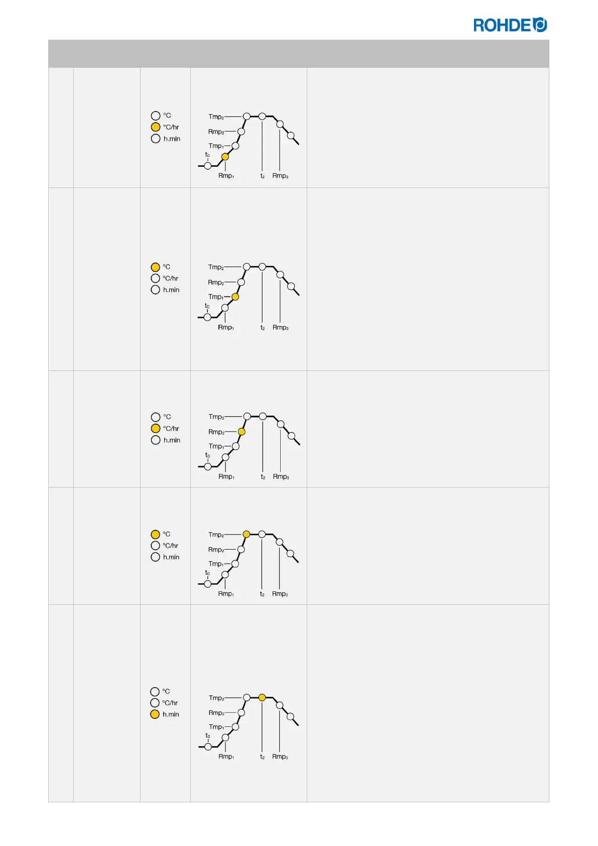 “1 – 999“ (°C/h), “FULL“ (massima quota di