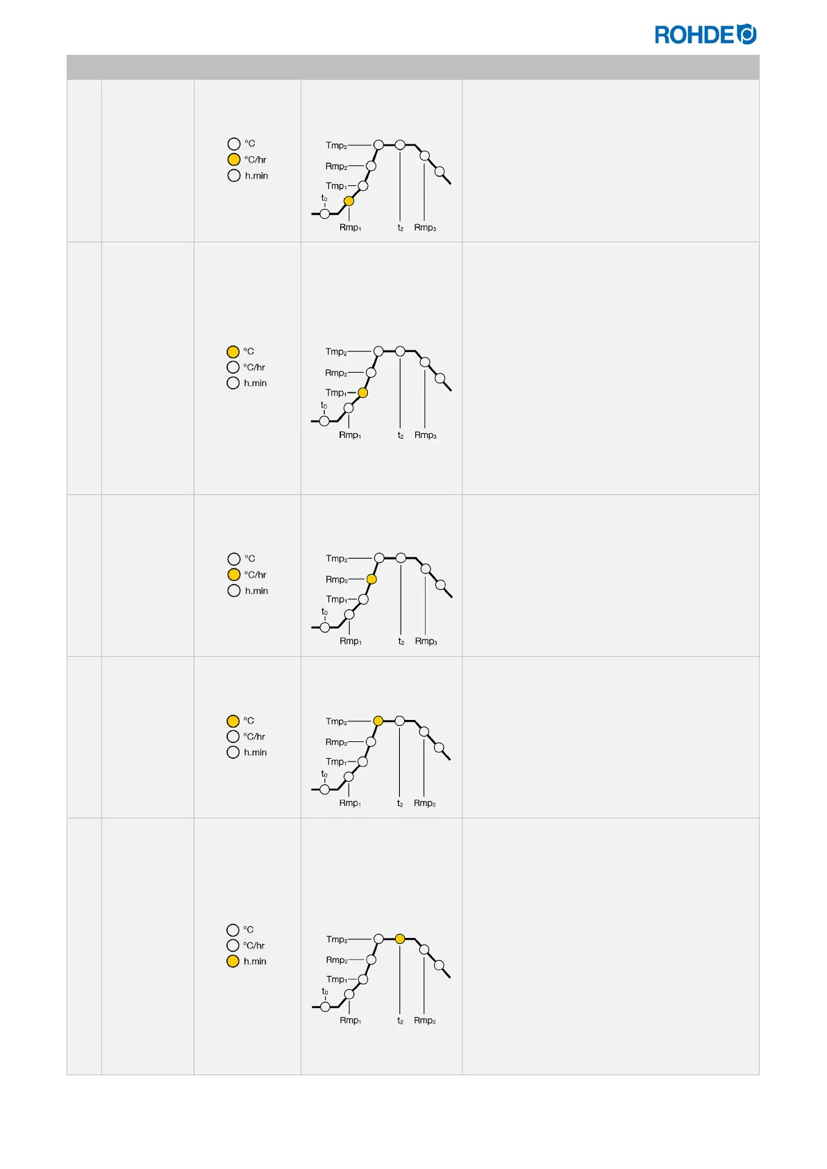 „1 – 999“ (°C/h), „FULL“ (maximale