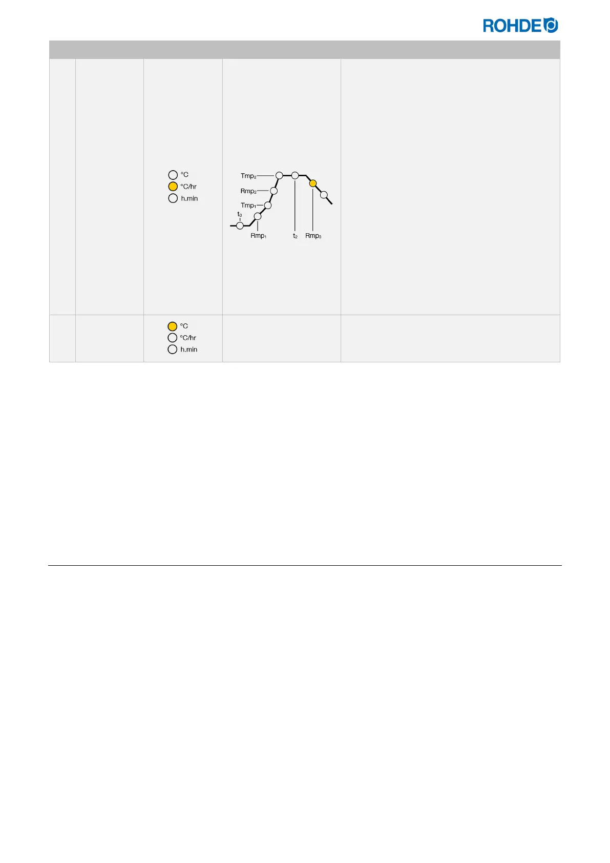 ⇒ Het stookprogramma eindigt met de betreffende opstook- of afkoelsnelheid (Rmp