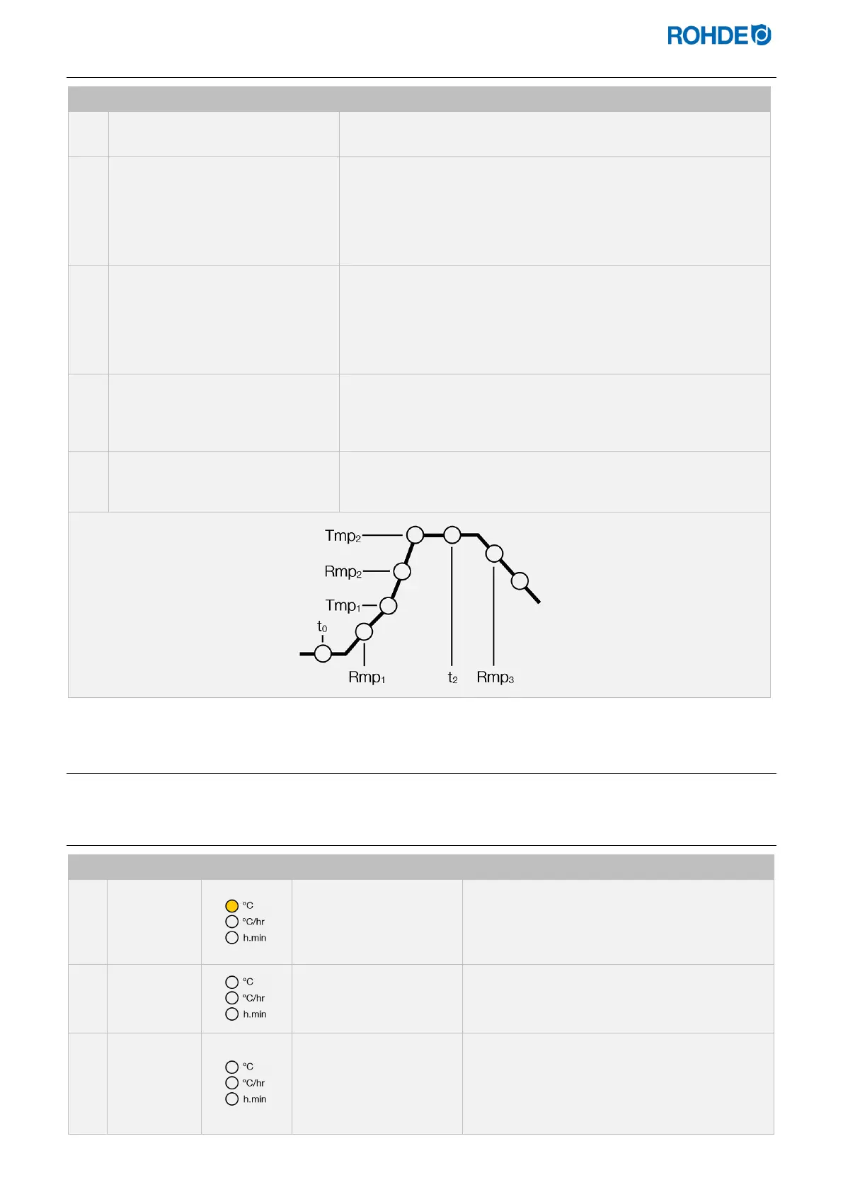 ⇒ The ramp rate is settable in the range between 1 °C/h and