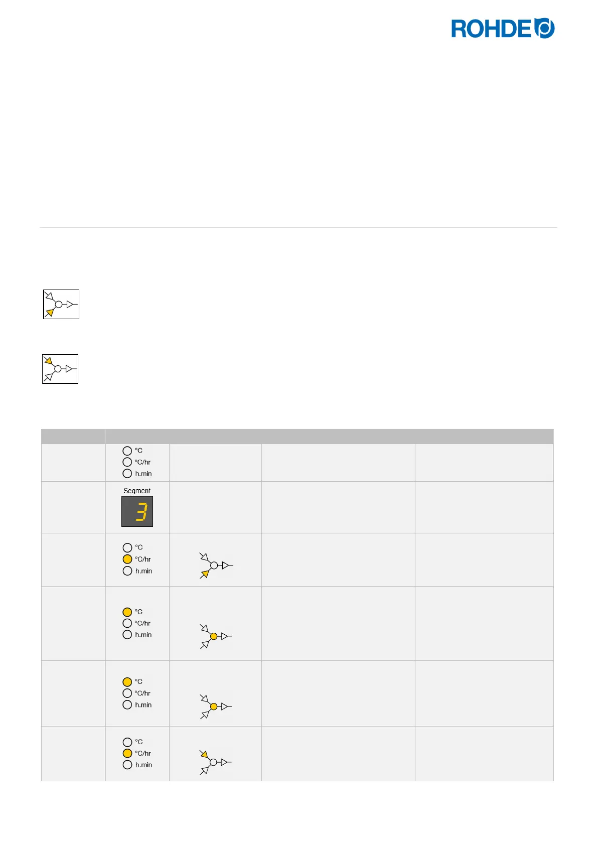 des vorherigen Segments, zeigt der Regler eine Aufheizrampe im ausgewählten Segment an.