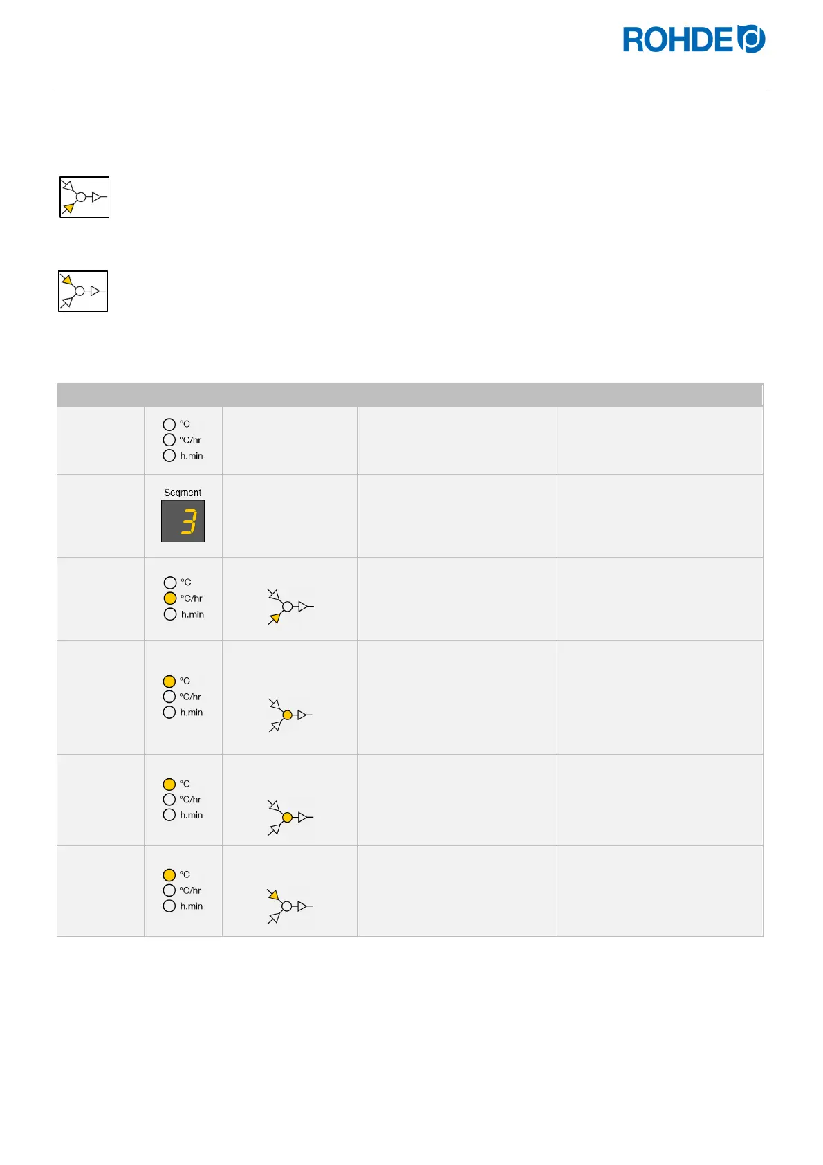 toont de regelaar een opstookfase in het geselecteerde segment.