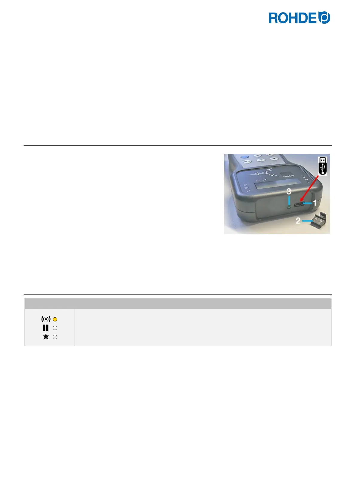 • Die Kontrollanzeige „USB-Stick am USB-Port eingesteckt“ an der Oberseite des Gehäuses bestätigt die