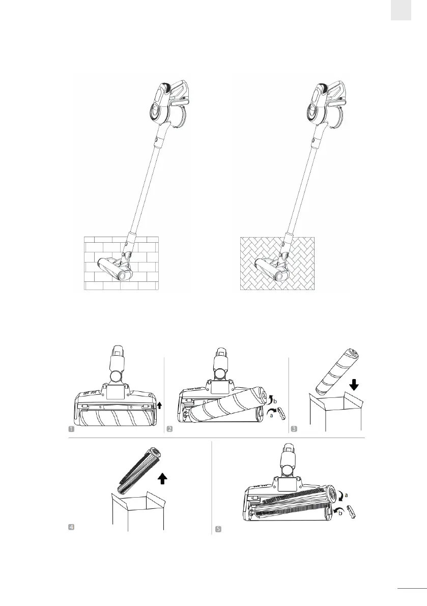 Put soft roller to clean dust on floor Put bristle roller to clean dust on carpet