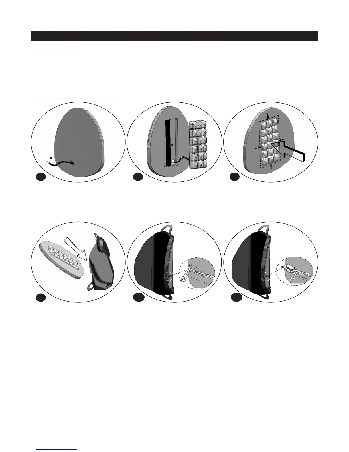 1. Align the fastener strip on the back of foam insert with the fastener strip in the cutout area on the front of foam pad and press together to