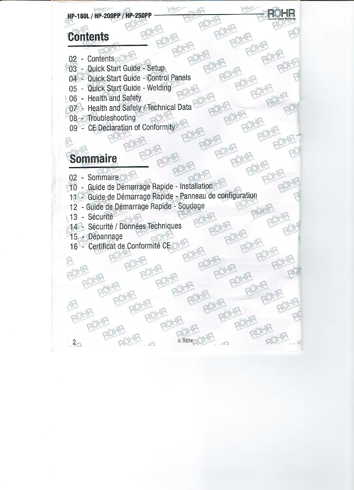 Rohr HP-250PP - 15_- Dépannage