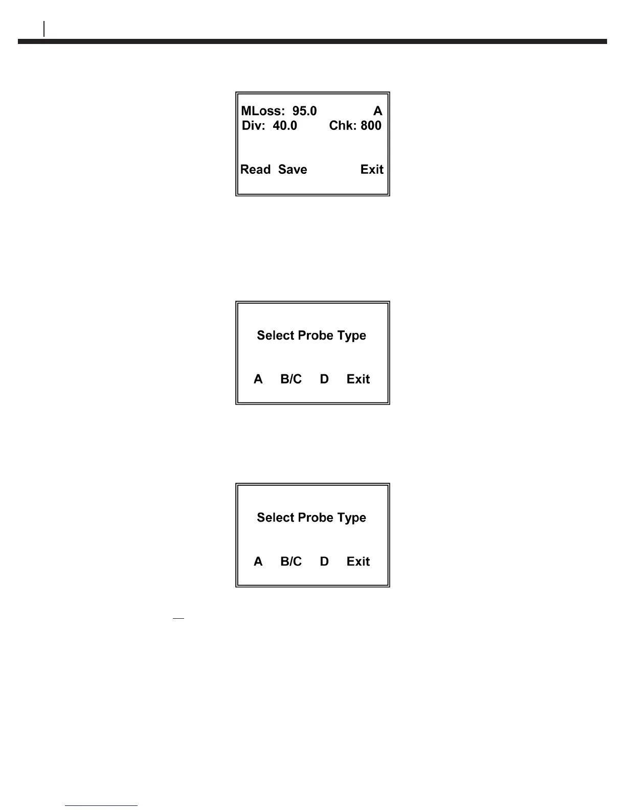 Select and press A (F1) for Wire Loop type probes or press B/C (F2) for Tube Loop/Strip