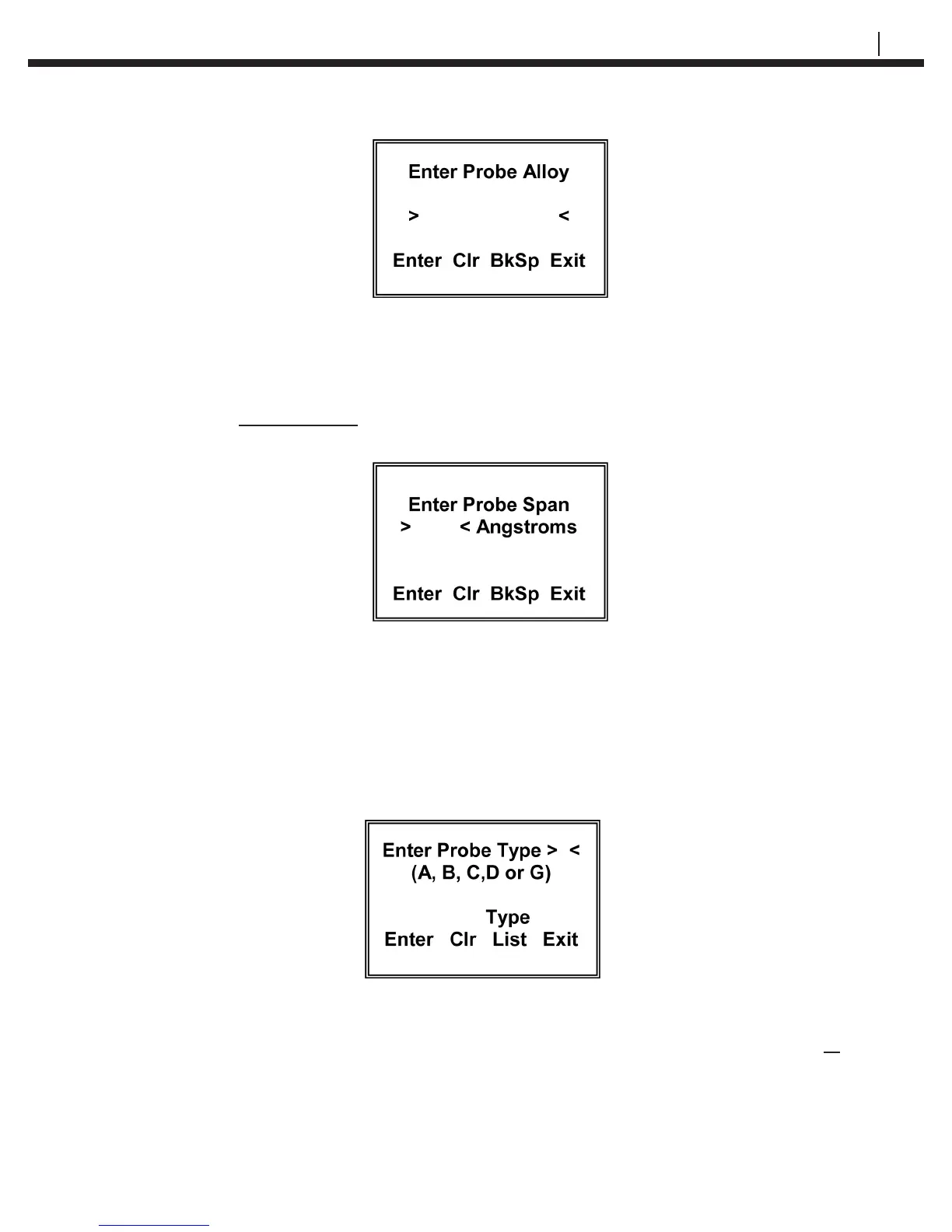 Using the numeric portion of the keypad, enter the probe span in Angstroms (Ǻ). The