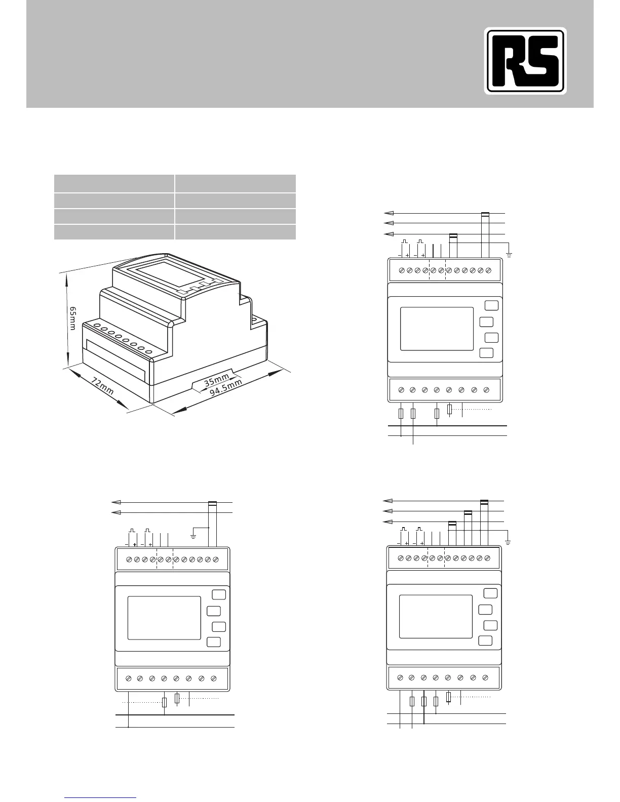 DIN rail dimensions 72 x 94.5 mm (WxH) per DIN 43880