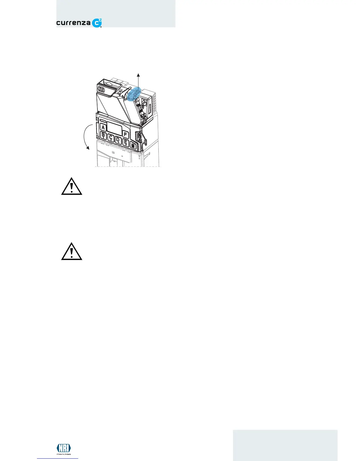 3 Lift up the latch and then swivel out the coin validator, see figure