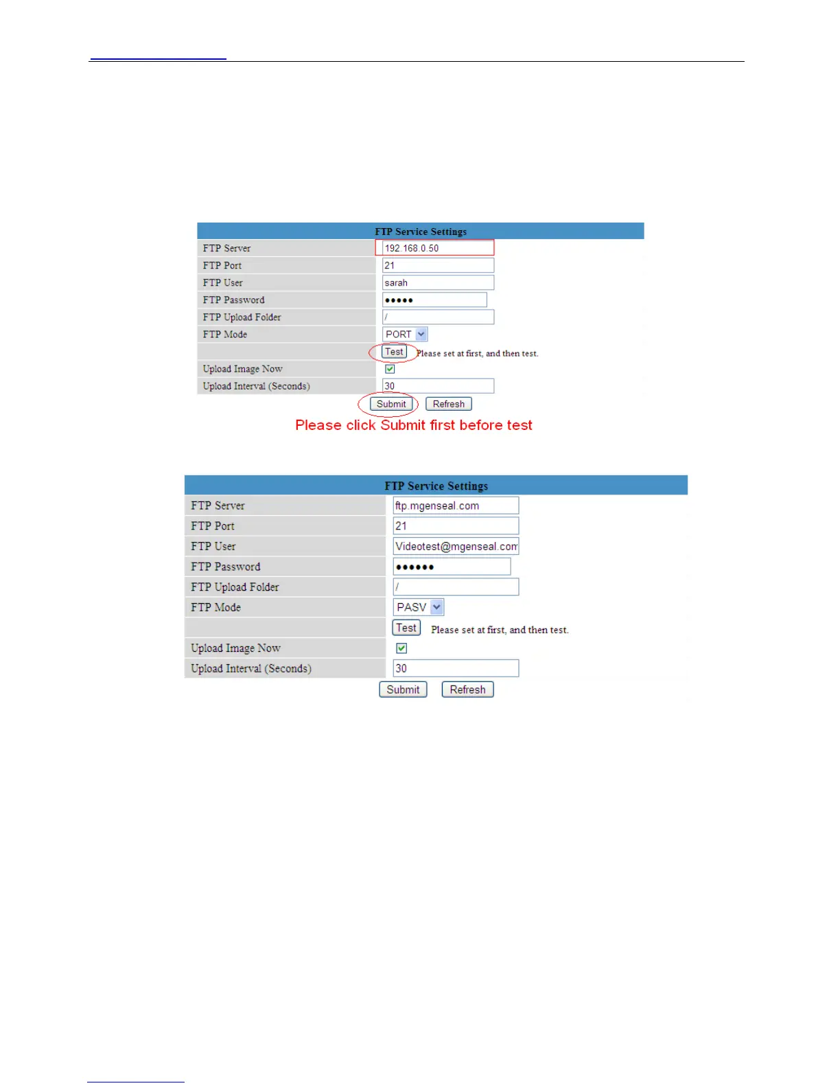 FTP Upload Folder: Make sure that the folder you plan to store images exists. For camera