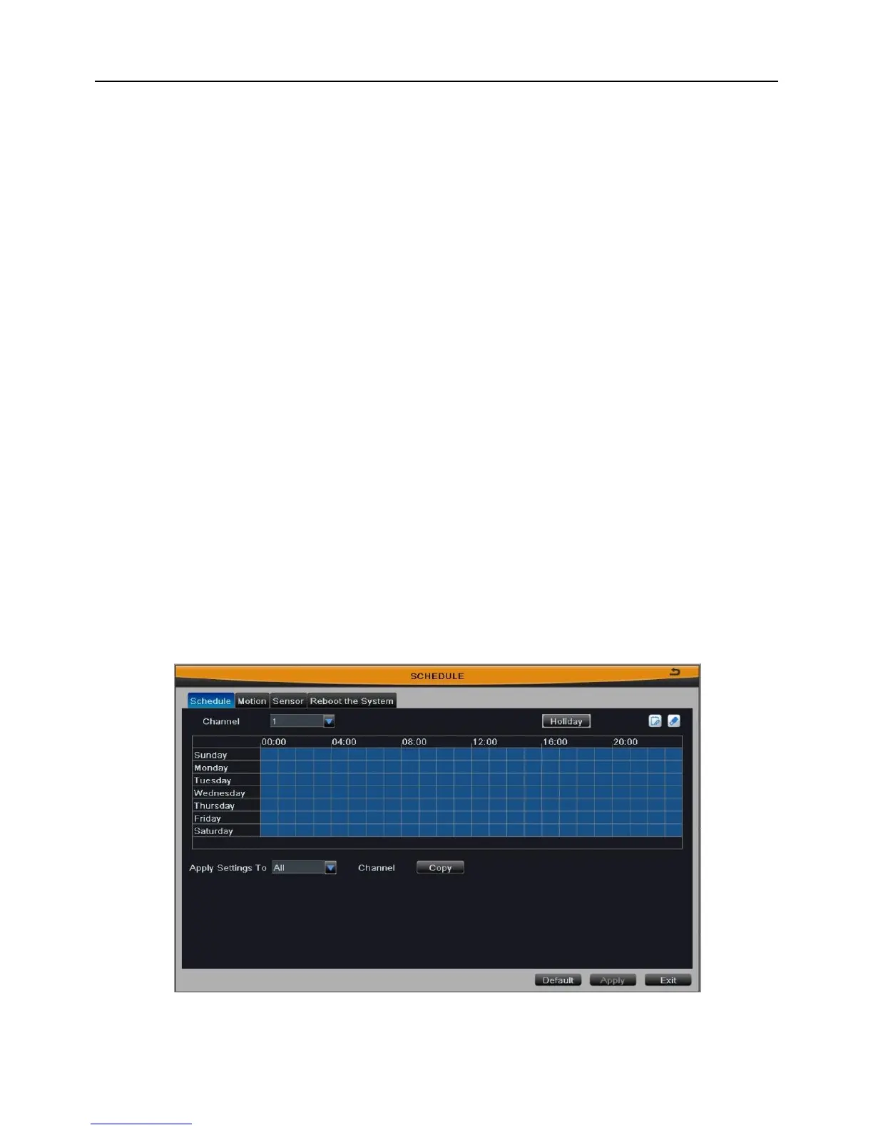 Click “Default” button to restore the default setting; click “Apply” button to save the
