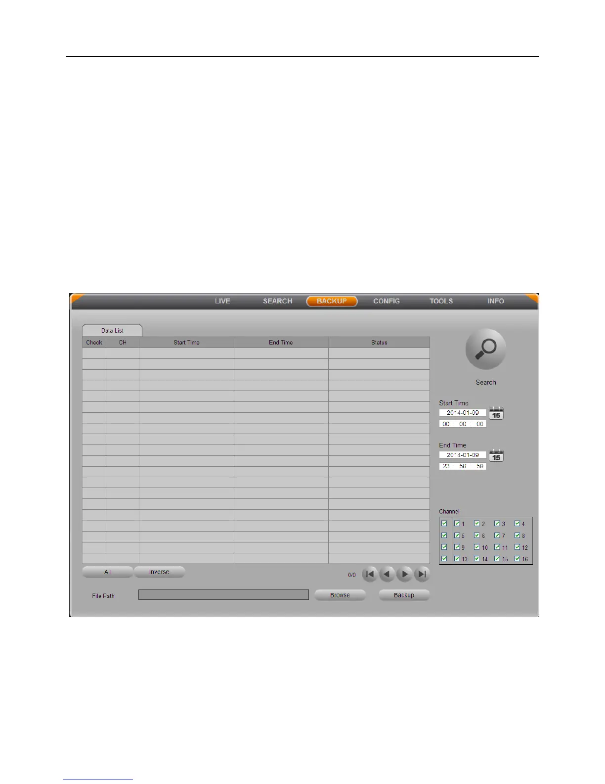 User can also remote backup by IE browser. Click “BACKUP” button to enter the