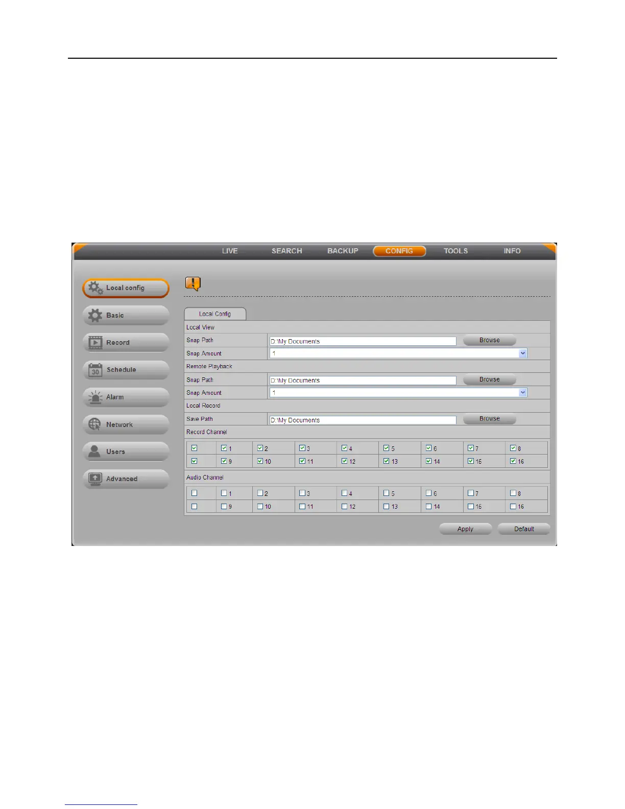 Click “CONFIG” button to enter the system configuration interface. Remote users can