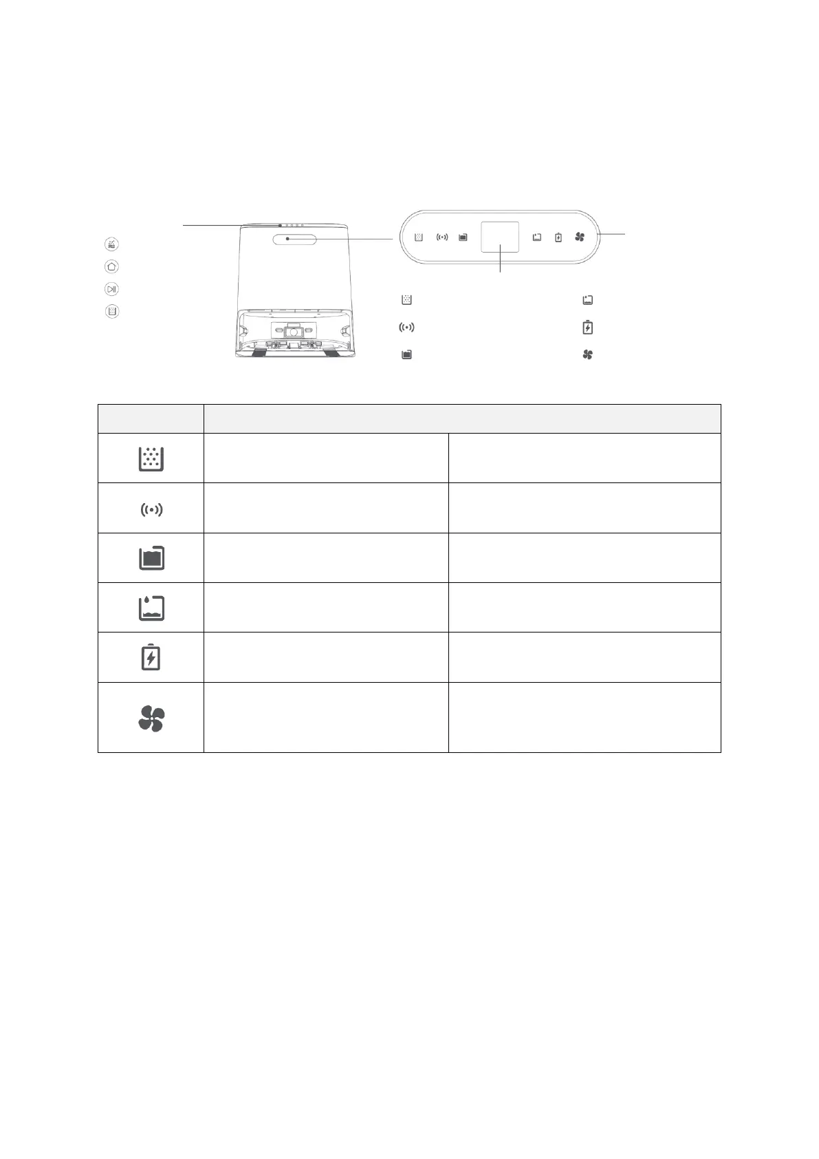 zachytáva prach alebo je v stave mopovania, svetelný pás zobrazuje pohyb svetelného