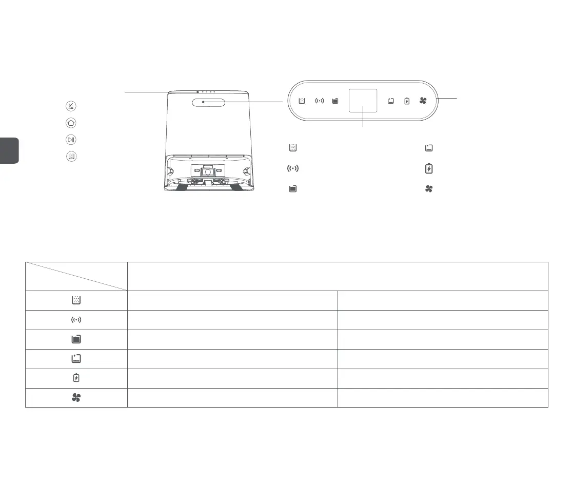 After the base station is connected to the power, the light strip is always on; when the dust is collected or in mop cleaning state, the light strip shows a gradient marquee light movement.