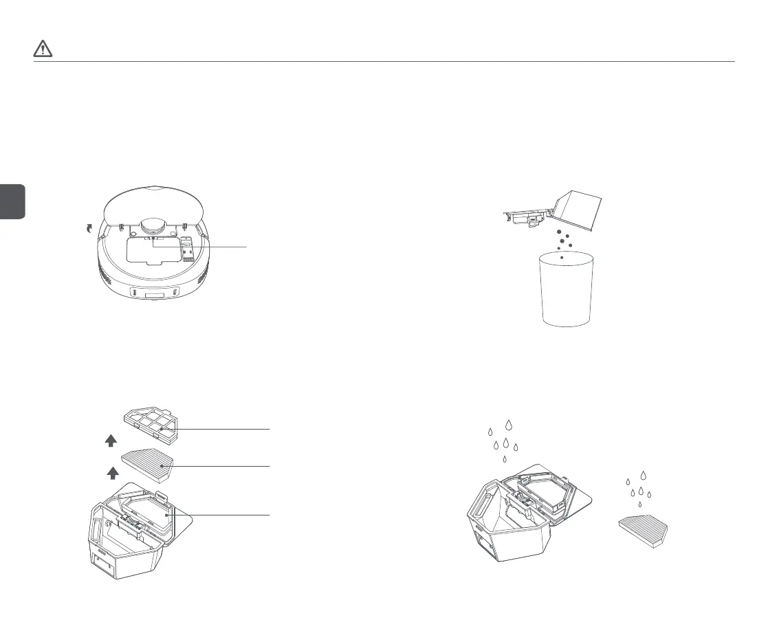 Open the dust box, align the dust box on top of the trash can, and dump the dust. Clean the