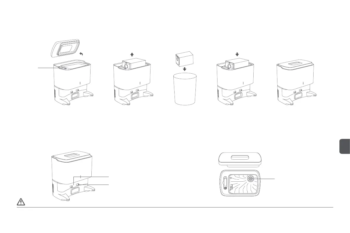 Do czyszczenia soczewki podczerwieni, styków ładowania i uchwytu na filtr wentylatora stacji opróżniającej nie wolno używać wilgotnych chusteczek, detergentów, aerozoli ani innych produktów