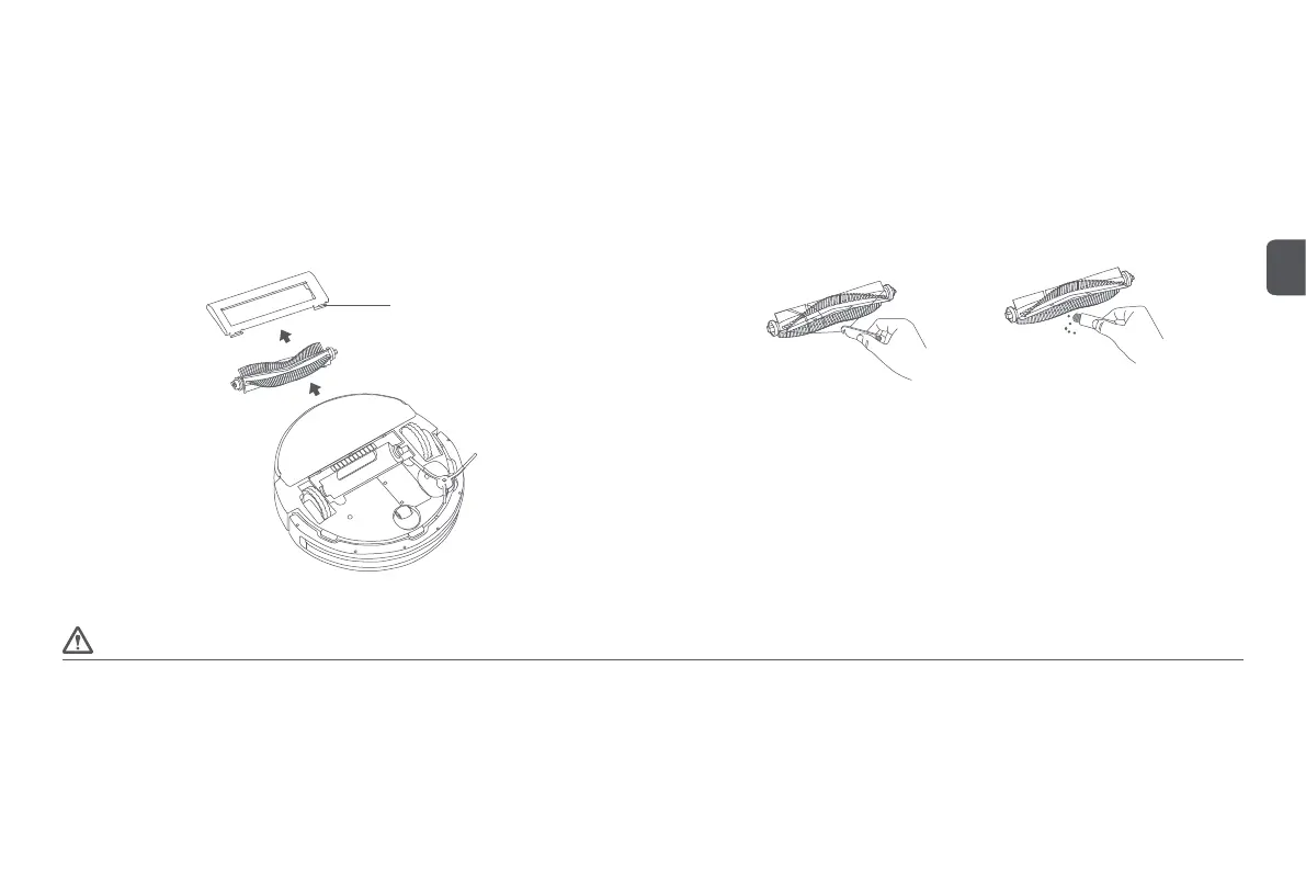 Turn the main unit over, li the buckle and take out the rolling brush cover, and then take out