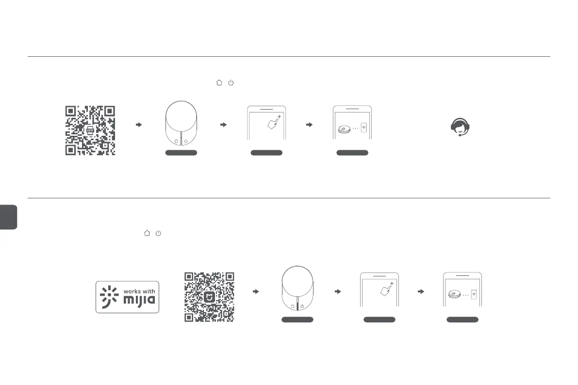 2. Inicie sesión en la aplicación. Mantenga pulsados simultáneamente los y botones del robot limpiador durante más de 3 segundos para restablecerlo. Haga clic en “+” en la parte superior derecha de