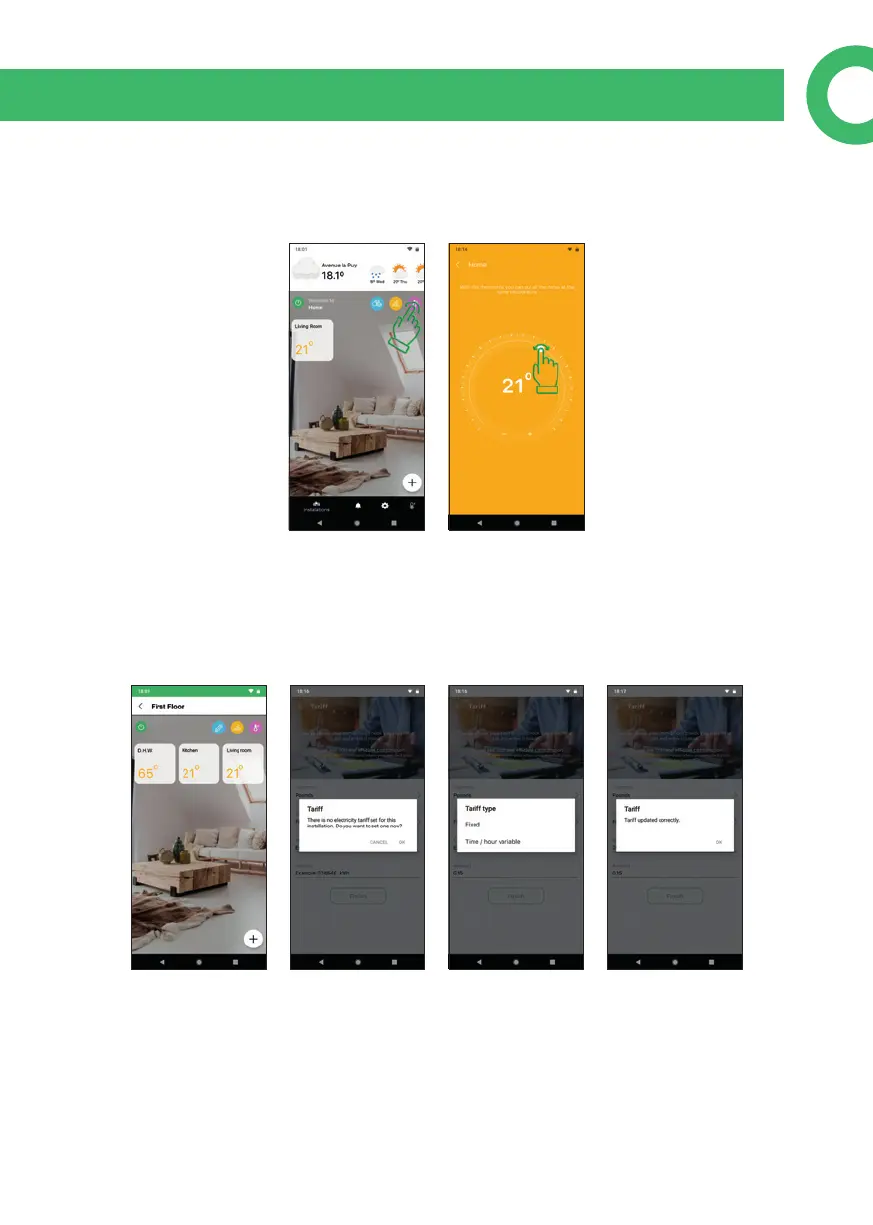 By clicking on the tari icon, you can set your electricity tari. When you do this for